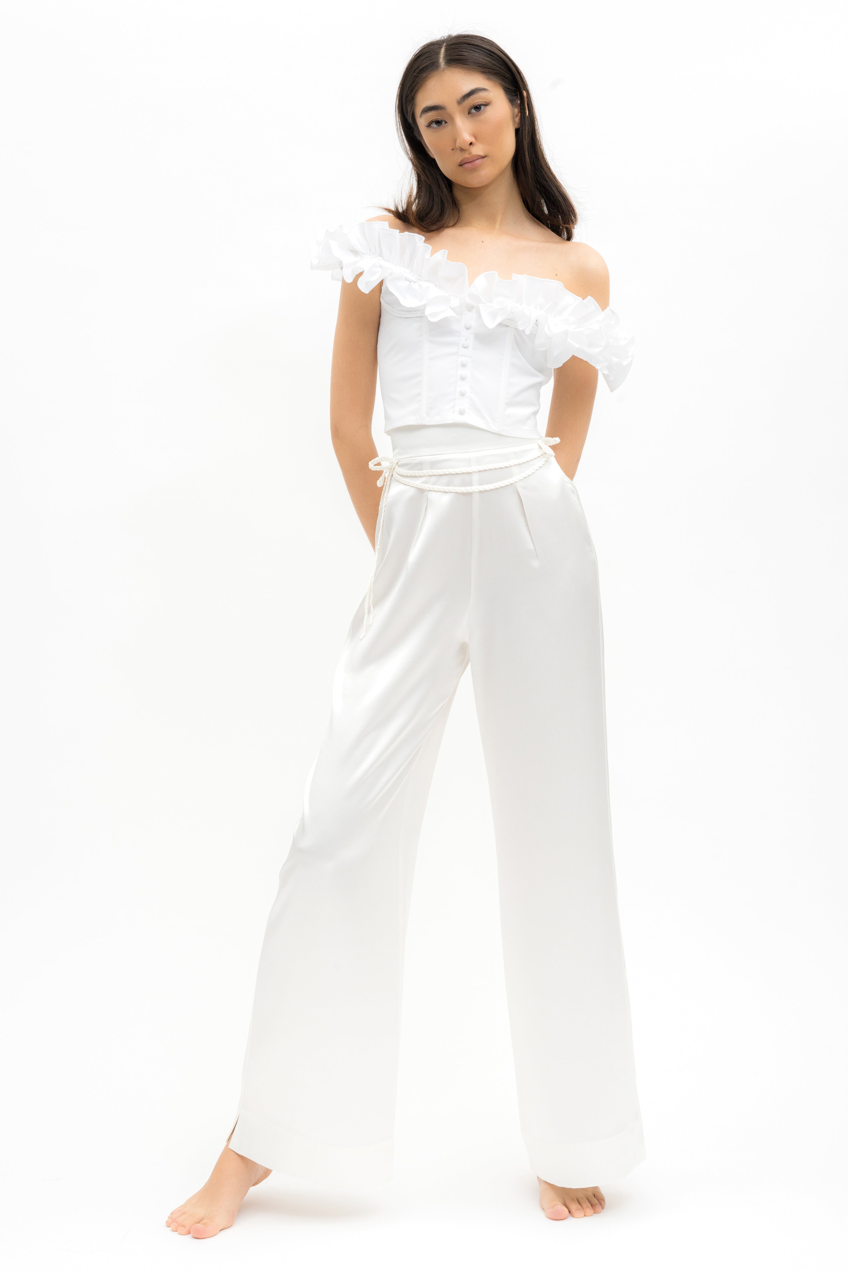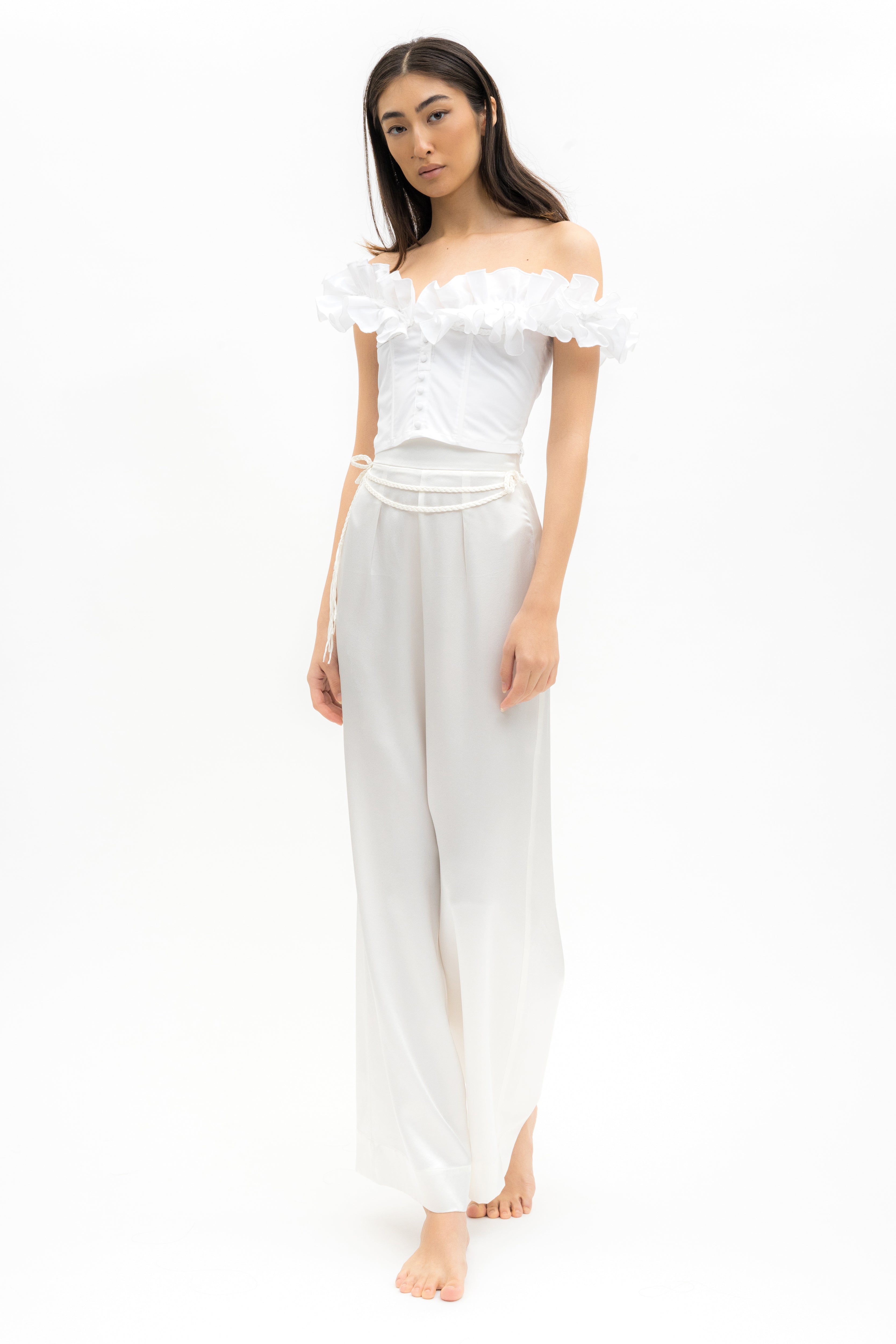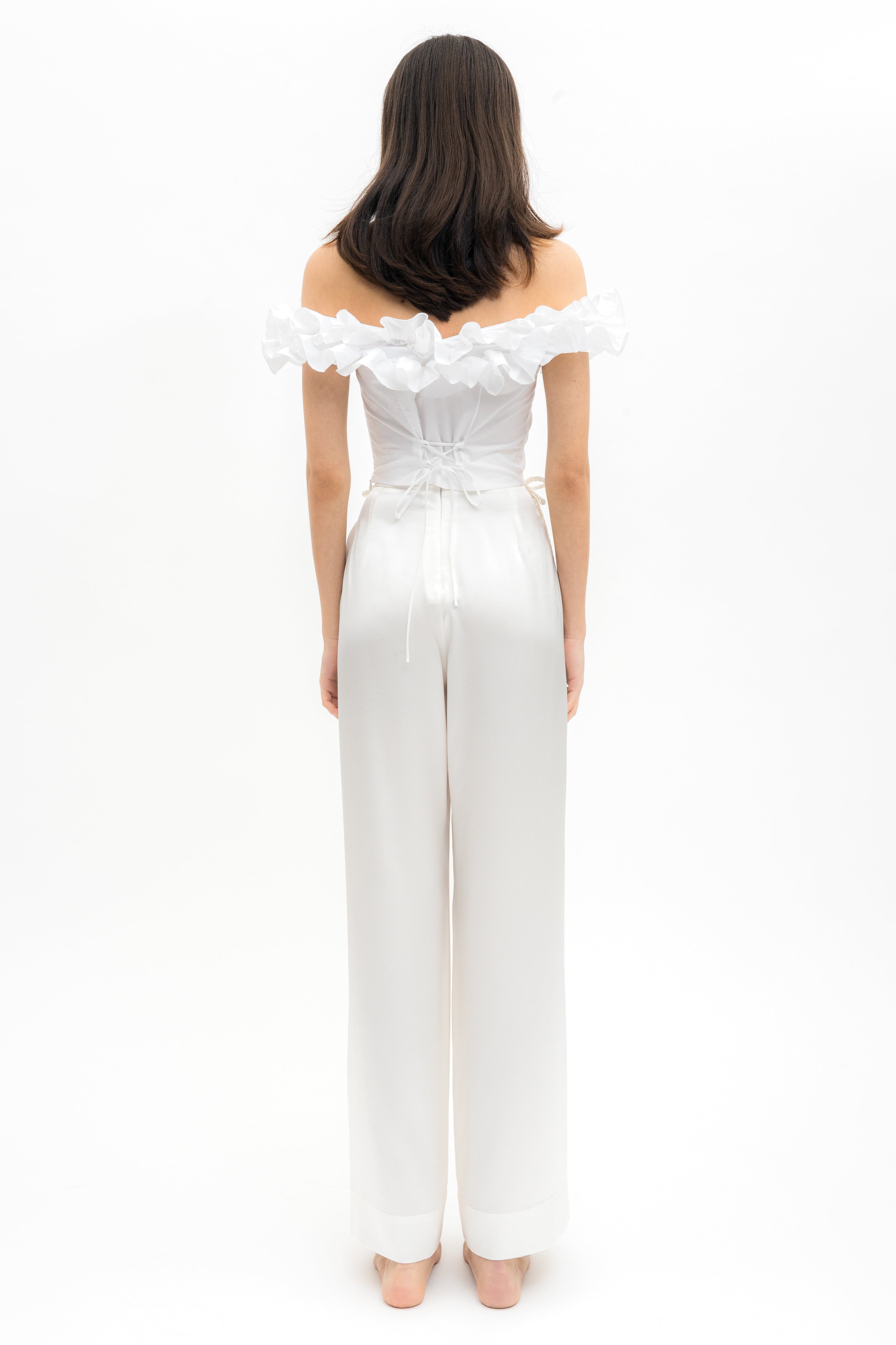 Off-shoulder cotton ruffled structured crop top in white